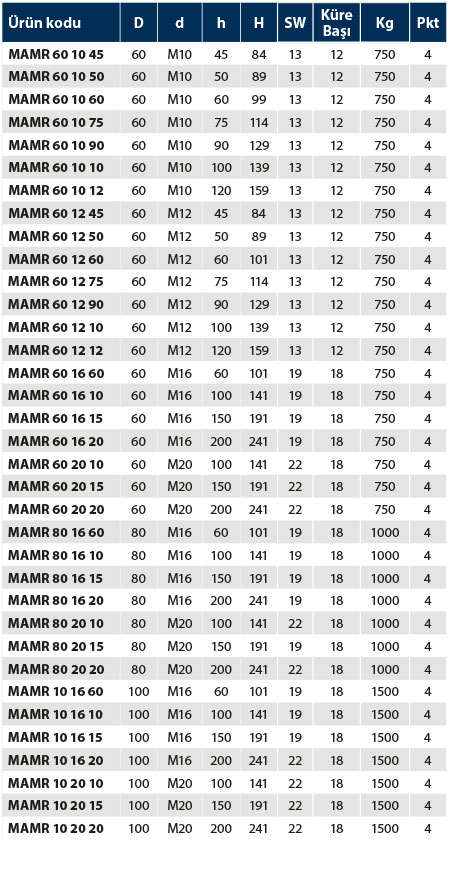 MAMr – Metal Ayak Mafsallı Kauçuk